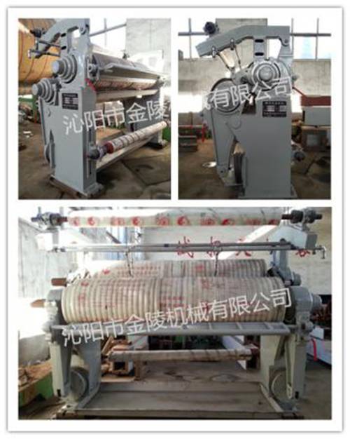 施膠機有鍍鉻輥、橡膠輥、引紙輥、進膠管、刮刀裝置、擋膠裝置和氣動加壓裝置等組成。在施膠輥上方配有進膠管,向兩輥之間供膠,進膠量有進膠管前的閥門控制,在施膠輥的兩端面設有可調(diào)整壓力的擋膠板,以防止膠液向輥面兩側流走,保持多余膠液流淌在施膠輥下面的接膠盤中。刮刀裝置作引紙剝紙用,一般正常生產(chǎn)時應抬起刮刀,以延長施膠輥的使用壽命